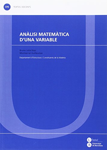 L?anàlisi matemàtica és una eina fonamental per a les titulacions universitàries de ciències. Bruno Juliá Díaz i Montserrat Guilleumas han aplegat les nocions indispensables per progressar en l?estudi d?aquesta matèria: nombres reals i complexos, topologia, funcions d?una variable, derivades, integració, successions i sèries. La presentació clara i rigorosa dels conceptes, així com els nombrosos exemples que es desenvolupen detalladament en el llibre, contribueixen de manera decisiva a facilitar la comprensió i la pràctica de l?anàlisi matemàtica.